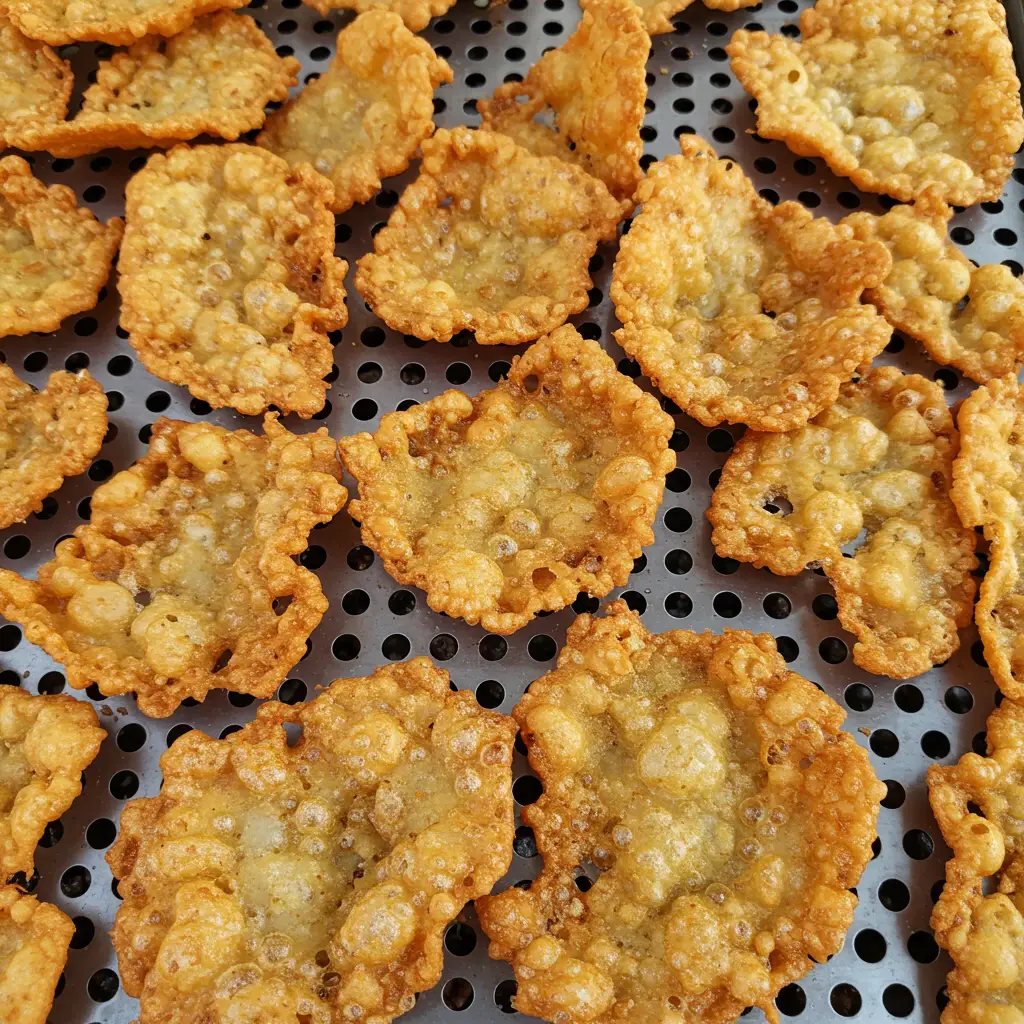 Quando estiverem douradas e crocantes, retire com uma escumadeira e coloque sobre papel toalha para absorver o excesso de óleo.