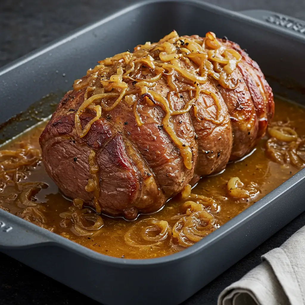 Retire do forno, transfira a carne para uma travessa e regue com o molho formado.