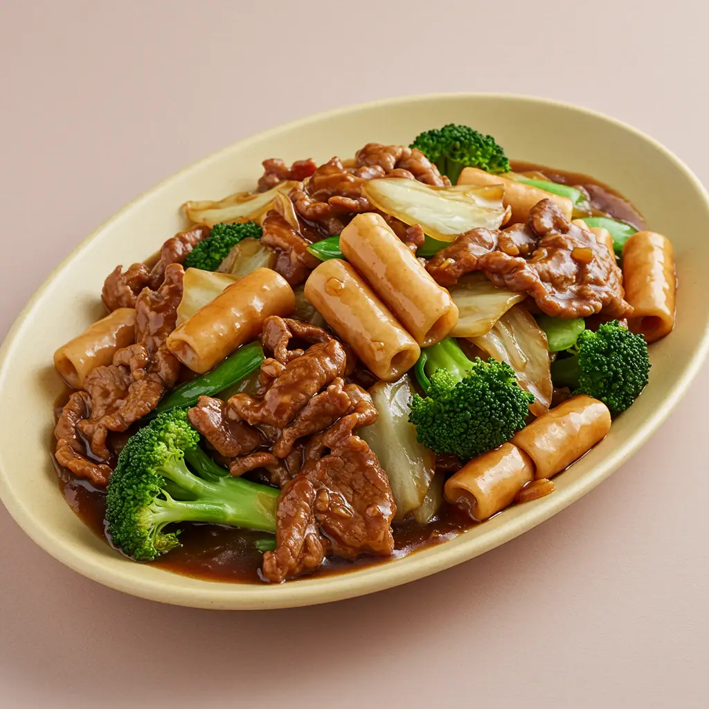 Um prato saboroso e prático, que transforma sobras de carne em um almoço ou jantar completo. A combinação de carne, legumes crocantes e o toque especial do tikuwa kai-ho resulta em uma refeição equilibrada e deliciosa.
