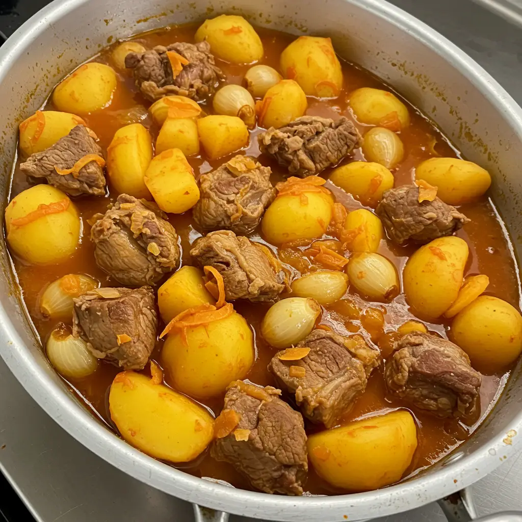 Tampe a panela e cozinhe em fogo baixo até a carne ficar bem macia (aproximadamente 2 horas).