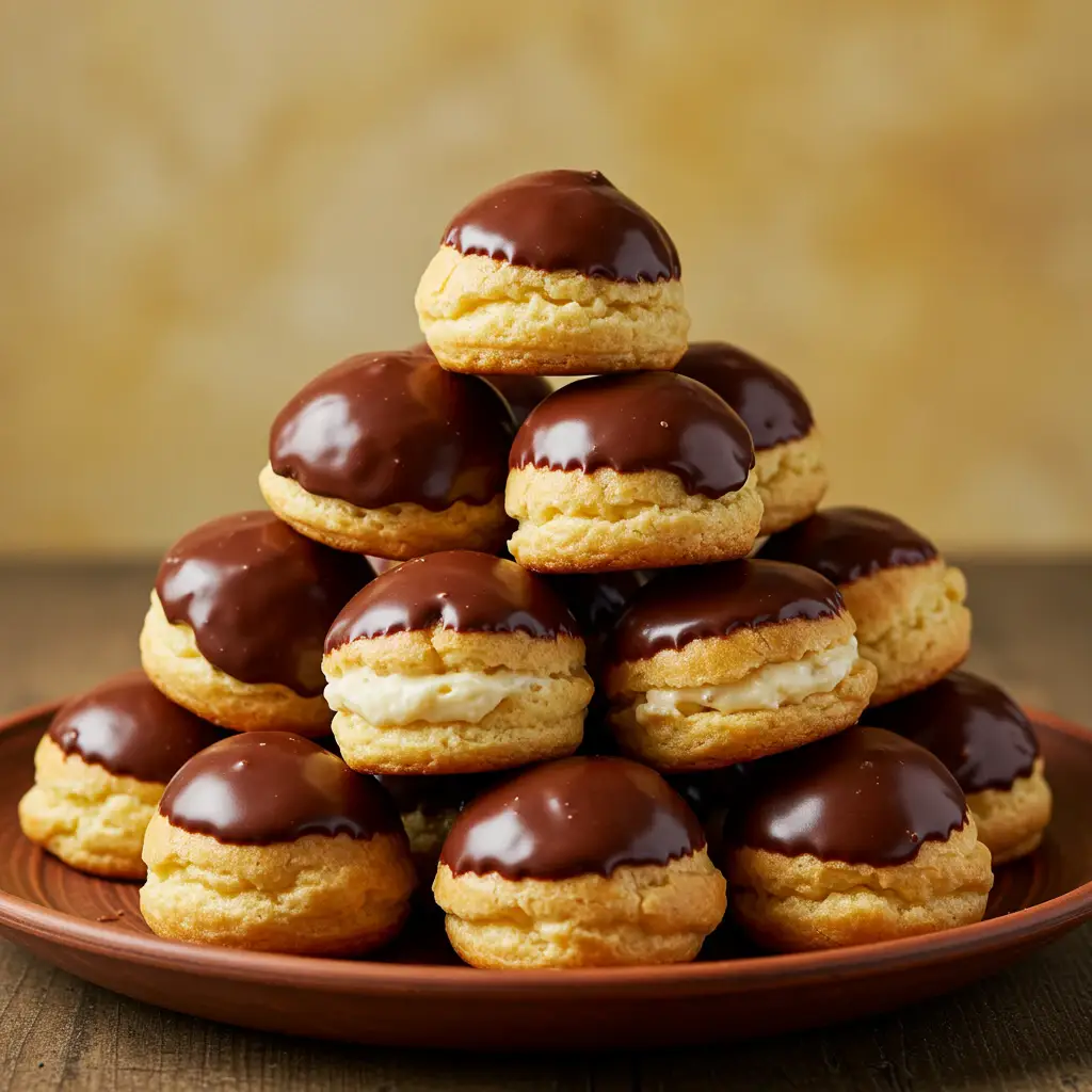 Deliciosas carolinas recheadas com doce de leite e banhadas em chocolate meio amargo. Uma combinação irresistível de texturas e sabores que agrada a todos os paladares. Perfeita para um chá da tarde ou sobremesa especial.