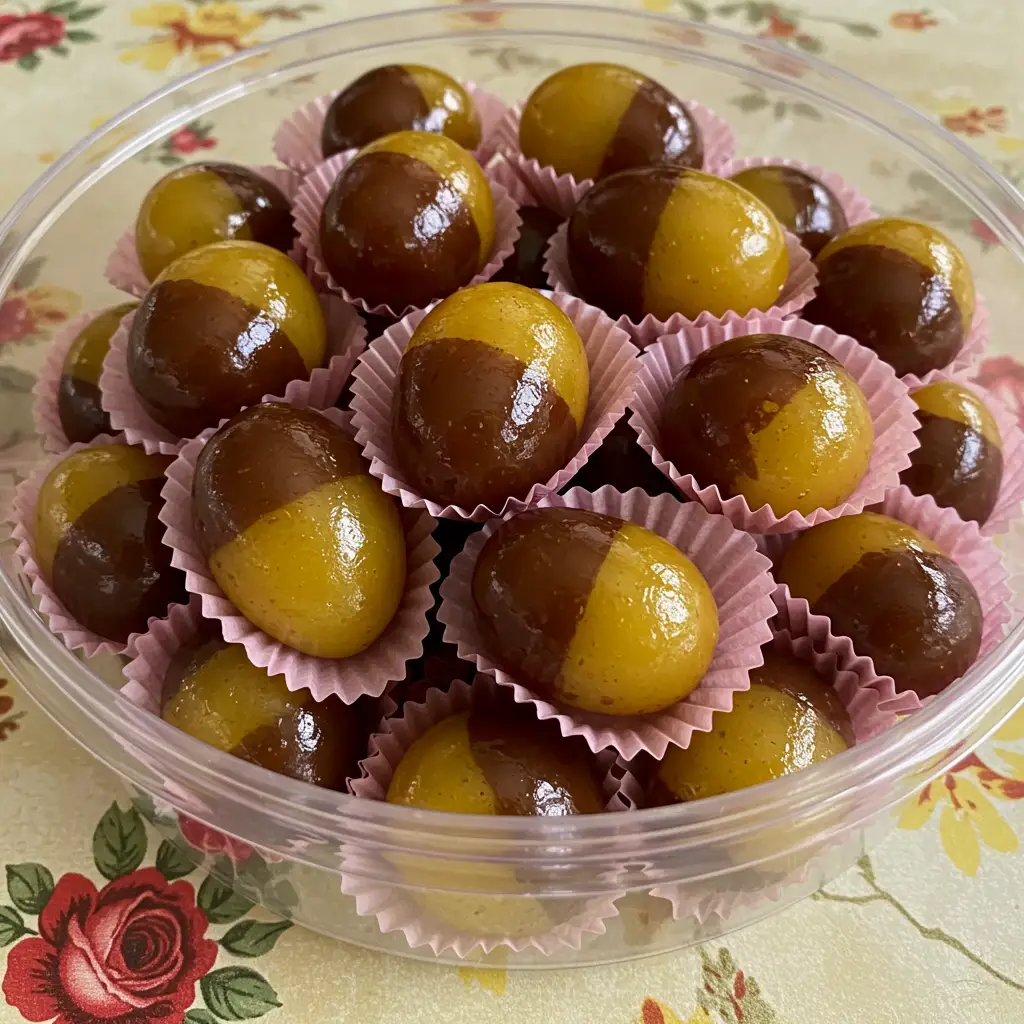 Deliciosos casadinhos de brigadeiro e brigadeiro branco, banhados em uma irresistível calda de caramelo. Uma combinação perfeita de sabores e texturas que derretem na boca!