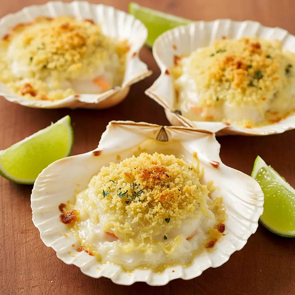 Um saboroso mix de frutos do mar em um cremoso molho branco, gratinado em casquinhas crocantes. Uma explosão de sabores do mar, perfeito para um jantar especial!
