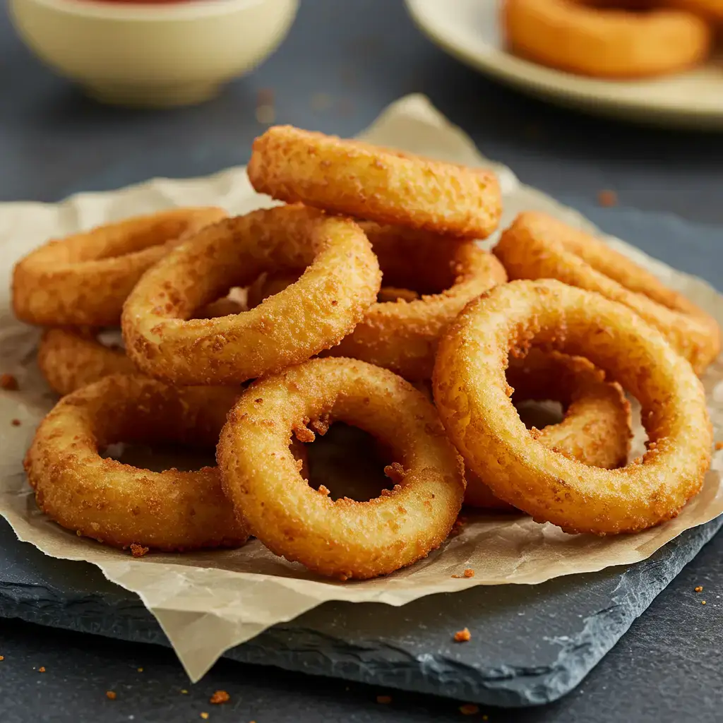 Deliciosas rodelas de cebola empanadas, com uma casquinha crocante e um interior macio. Uma entrada perfeita para acompanhar seus pratos favoritos ou como um petisco irresistível.