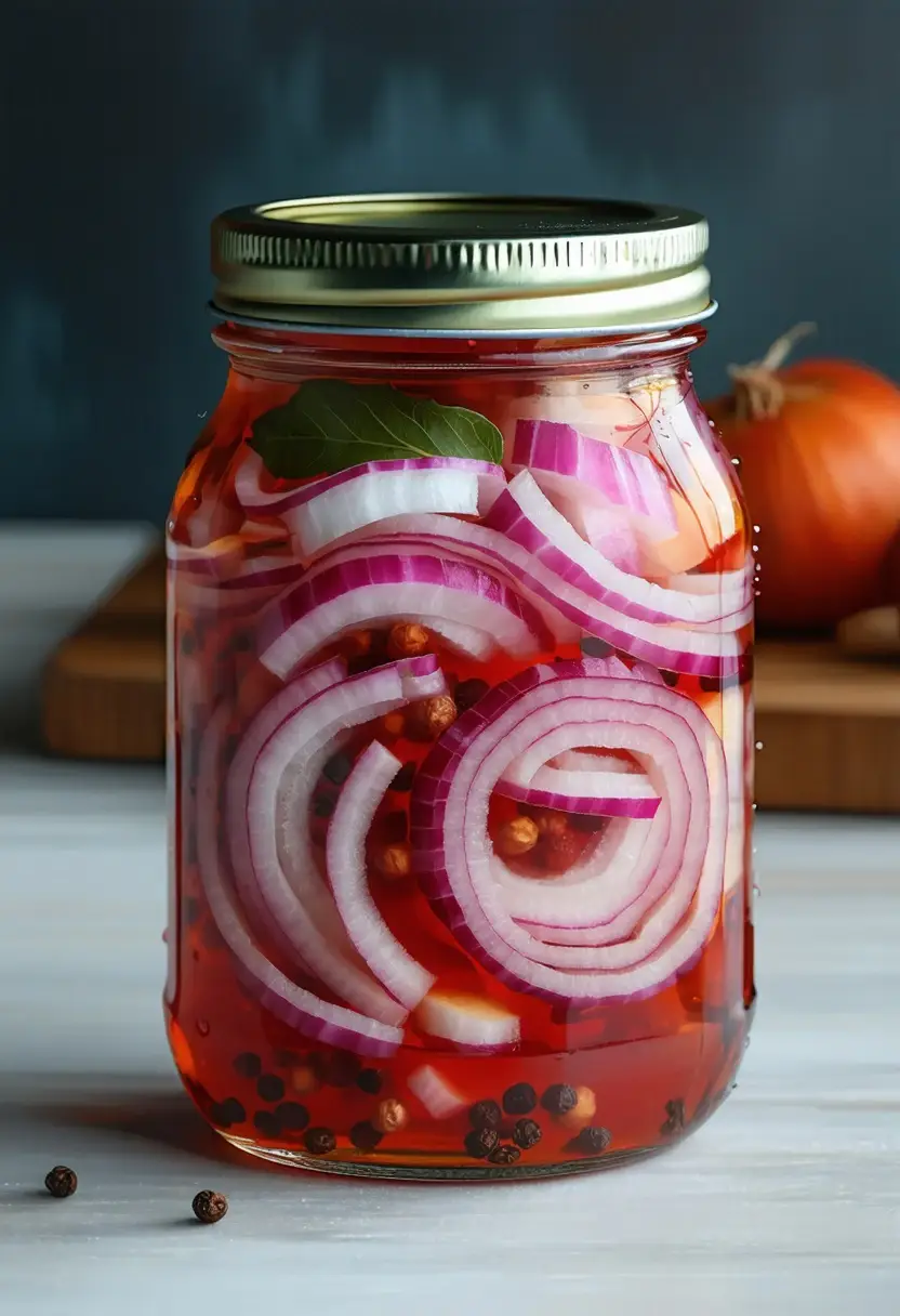 A cebola roxa em conserva rápida é a acompanhamenta perfeita para dar um toque especial aos seus pratos. Com um sabor agridoce irresistível, ela transforma qualquer refeição em uma experiência gourmet.