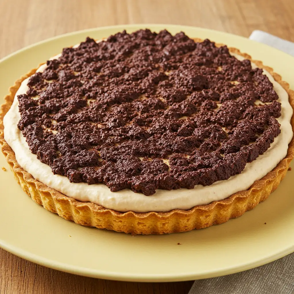 Em um processador, triture os biscoitos até obter uma farofa grossa. Adicione a manteiga, o sal, o açúcar, o chocolate em pó, a farinha de trigo, o café solúvel e o licor de café. Processe até obter uma mistura homogênea.