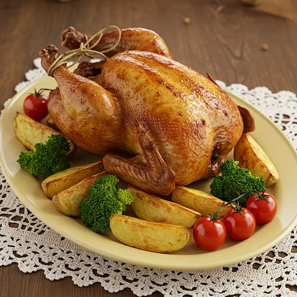 Um Chester suculento e saboroso, assado com maçãs recheadas com uvas passas e nozes. O molho de laranja e vinho espumante completa a experiência, criando um prato festivo e inesquecível.