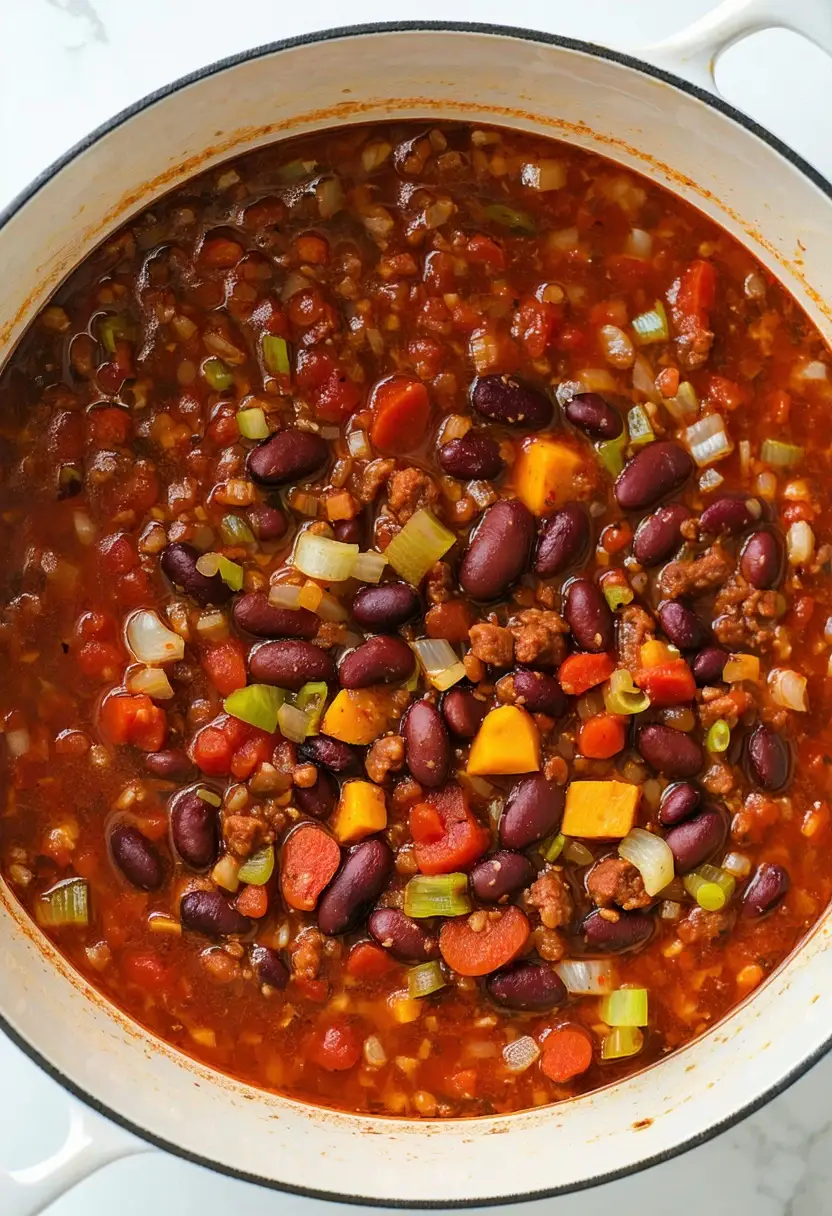 Um chili vegetariano robusto e saboroso recheado com feijão preto e especiarias.