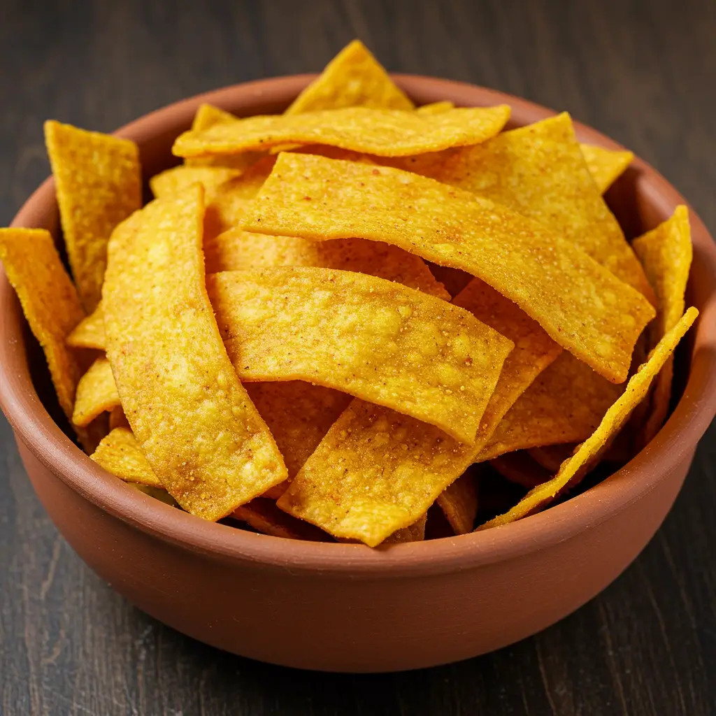 Deliciosas chips de banana da terra, crocantes e temperadas com páprica picante, cominho e sal. Um aperitivo perfeito para compartilhar ou saborear sozinho!