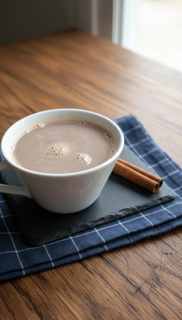 Um chocolate quente cremoso e reconfortante, perfeito para aquecer o corpo e a alma nos dias frios. O toque suave da canela realça o sabor intenso do chocolate, criando uma bebida deliciosa e inesquecível.