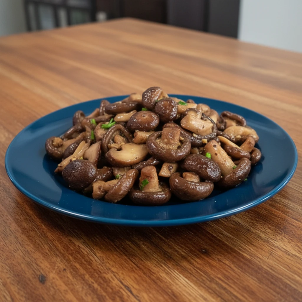 Um acompanhamento sofisticado e rápido! Cogumelos shitake salteados na manteiga, com um toque de alho, shoyu e vinho branco. Perfeito para carnes grelhadas ou risotos.