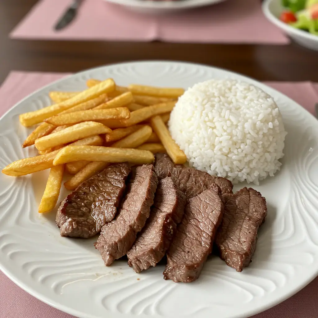Um prato suculento e saboroso! Contrafilé macio ao molho de cebola e alho, coberto com mussarela derretida, acompanhado de batatas fritas crocantes. Uma combinação perfeita para uma refeição deliciosa e fácil de preparar.
