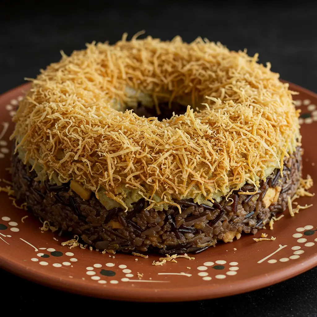 Coroa de Bacalhau com Arroz Selvagem e Aletria