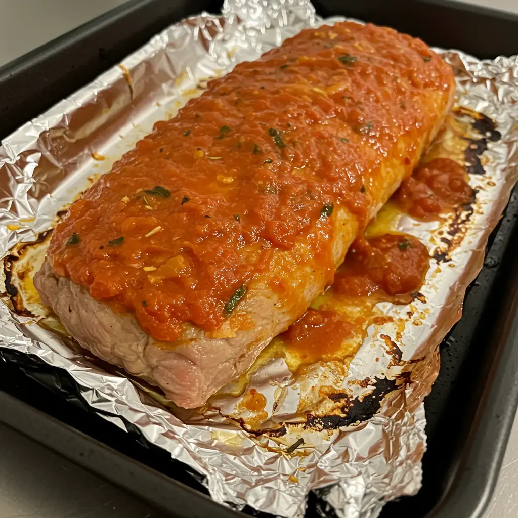 Envolva a costela completamente com o papel alumínio, formando um pacote fechado.