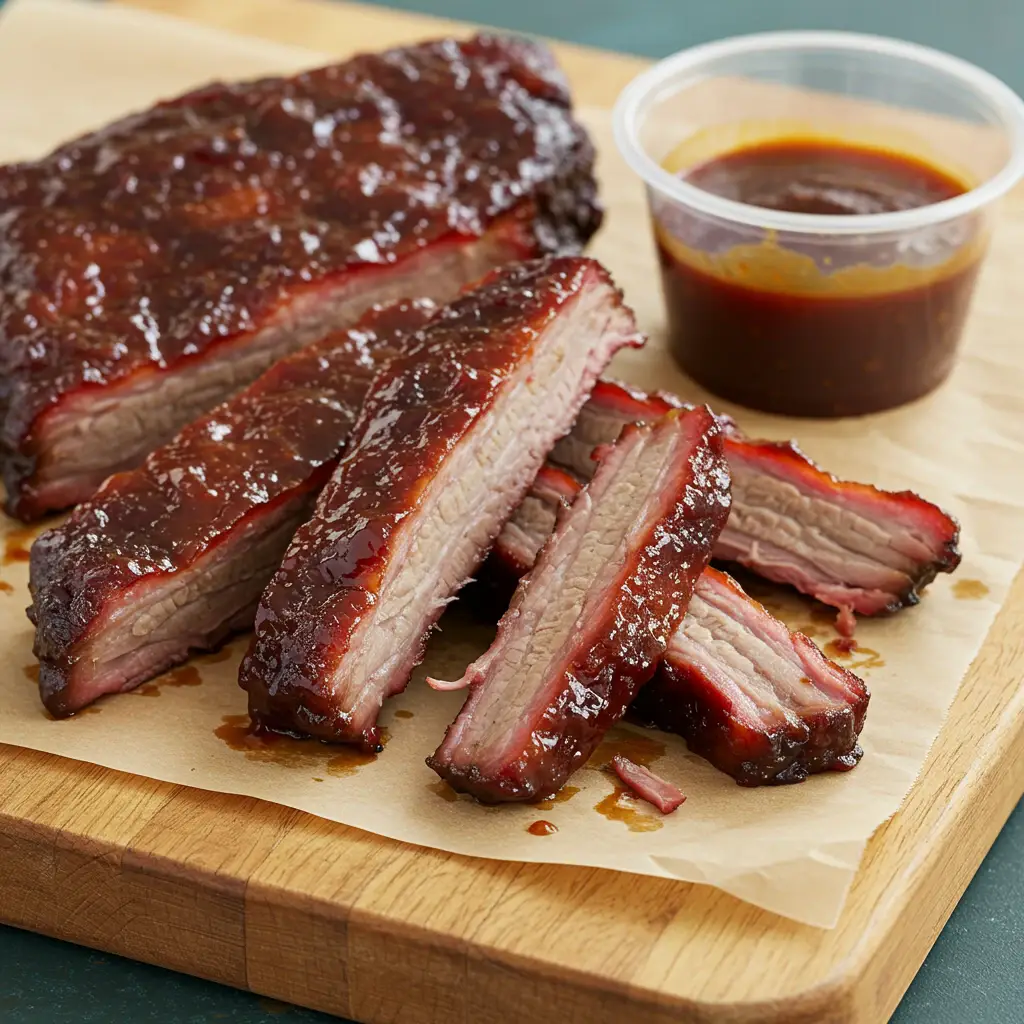 Retire do forno, deixe descansar por 10 minutos antes de fatiar e servir. Coe o molho restante da assadeira e sirva por cima da costela, ou utilize um molho barbecue pronto, se preferir.