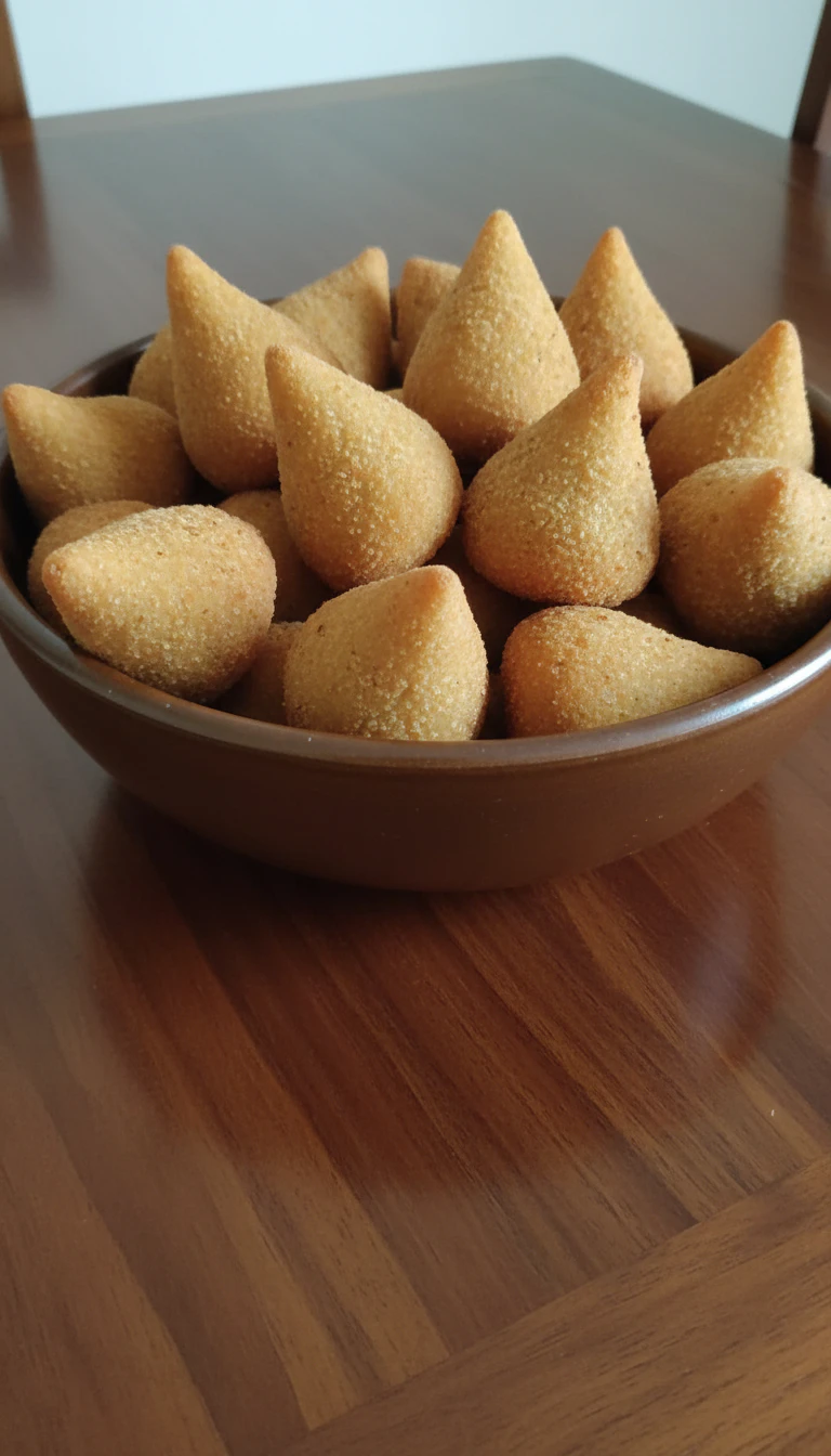 Coxinhas irresistíveis, feitas com farinha integral e um delicioso recheio de frango e legumes. Uma opção mais saudável e saborosa para um lanche da tarde ou aperitivo.