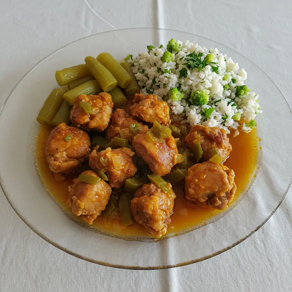Uma deliciosa combinação de coxinhas da asa de frango suculentas com vagem crocante, acompanhadas de um arroz de brócolis cheio de sabor. Perfeito para um almoço em família!