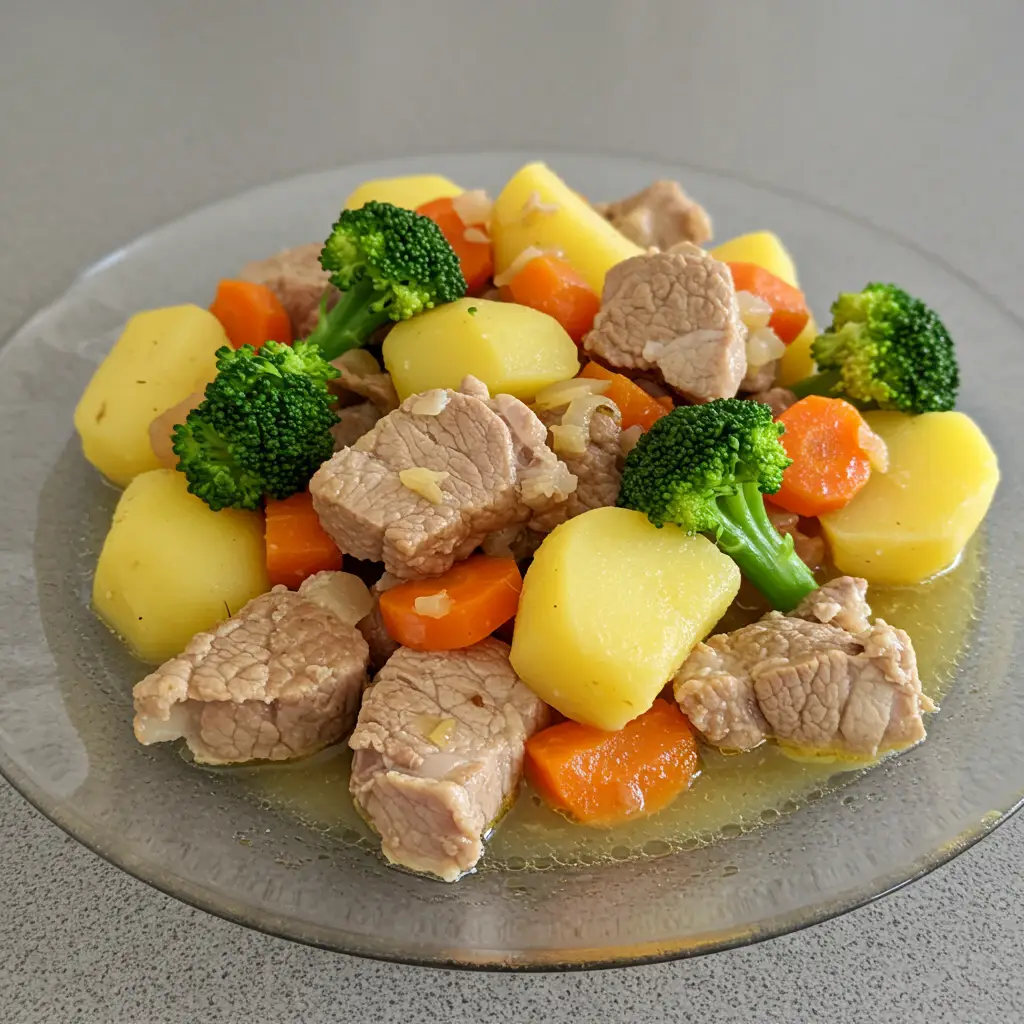 Um cozido caseiro e saboroso, perfeito para um almoço reconfortante. A carne de porco suculenta se harmoniza perfeitamente com os legumes frescos e macios. Uma receita simples e nutritiva, ideal para o dia a dia.