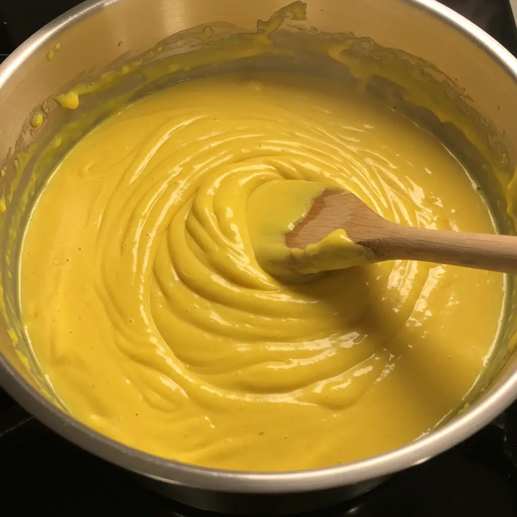 Caso o creme esteja muito grosso, adicione mais água do cozimento até alcançar a consistência desejada.