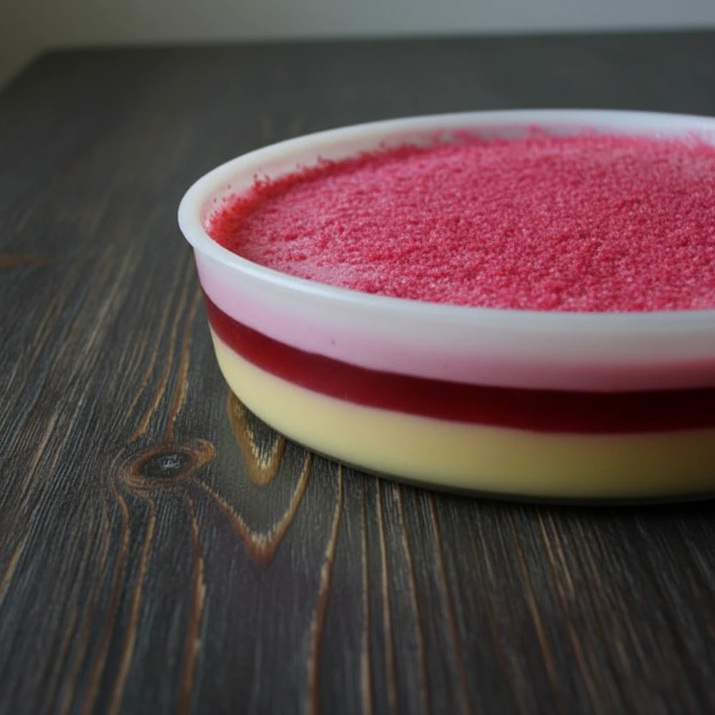 Sirva gelado. A gelatina irá formar uma camada rosada sobre o creme.