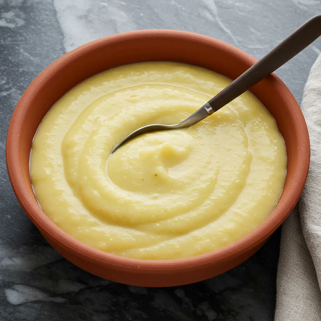 Um creme de mandioca suave e saboroso, perfeito como acompanhamento para carnes ou simplesmente como um prato principal leve e reconfortante. Sua textura cremosa e sabor delicado vão te conquistar!