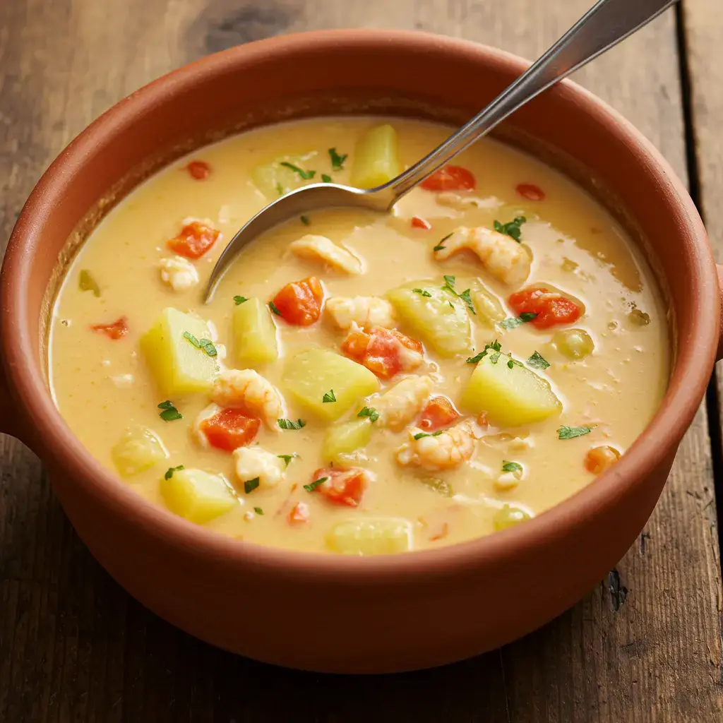 Uma sopa brasileira reconfortante e saborosa! Camarões suculentos combinados com arroz cremoso, cenoura e batata em um caldo levemente temperado. Uma refeição simples e deliciosa, perfeita para um jantar em família.