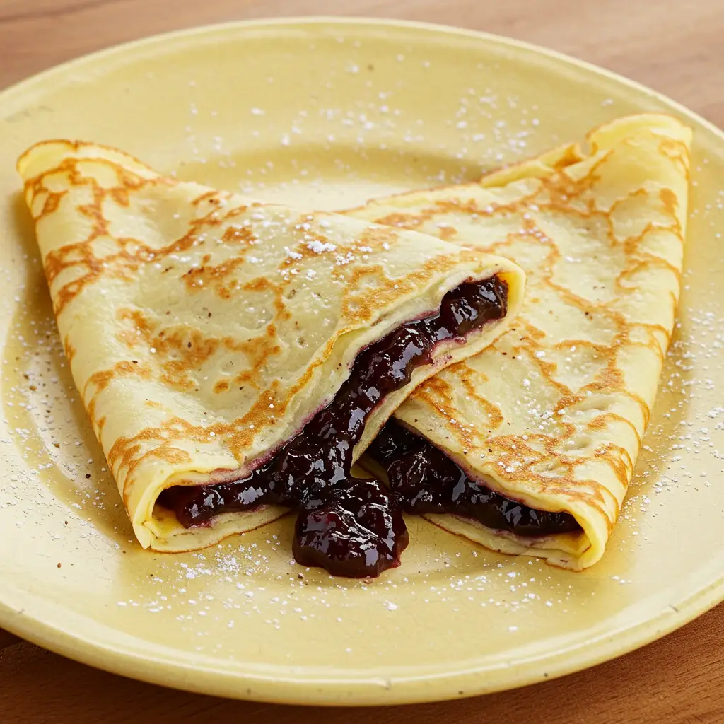 Deliciosos crepes finos e macios, recheados com uma irresistível geleia de ameixa preta caseira. Uma combinação perfeita de sabores que encanta o paladar. Ideal para um café da manhã especial ou um lanche sofisticado.