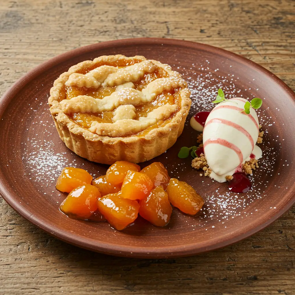 Uma deliciosa crostata com um irresistível recheio de damasco cozido em calda de açúcar e rum. A massa amanteigada e crocante completa essa sobremesa perfeita para um chá da tarde especial.