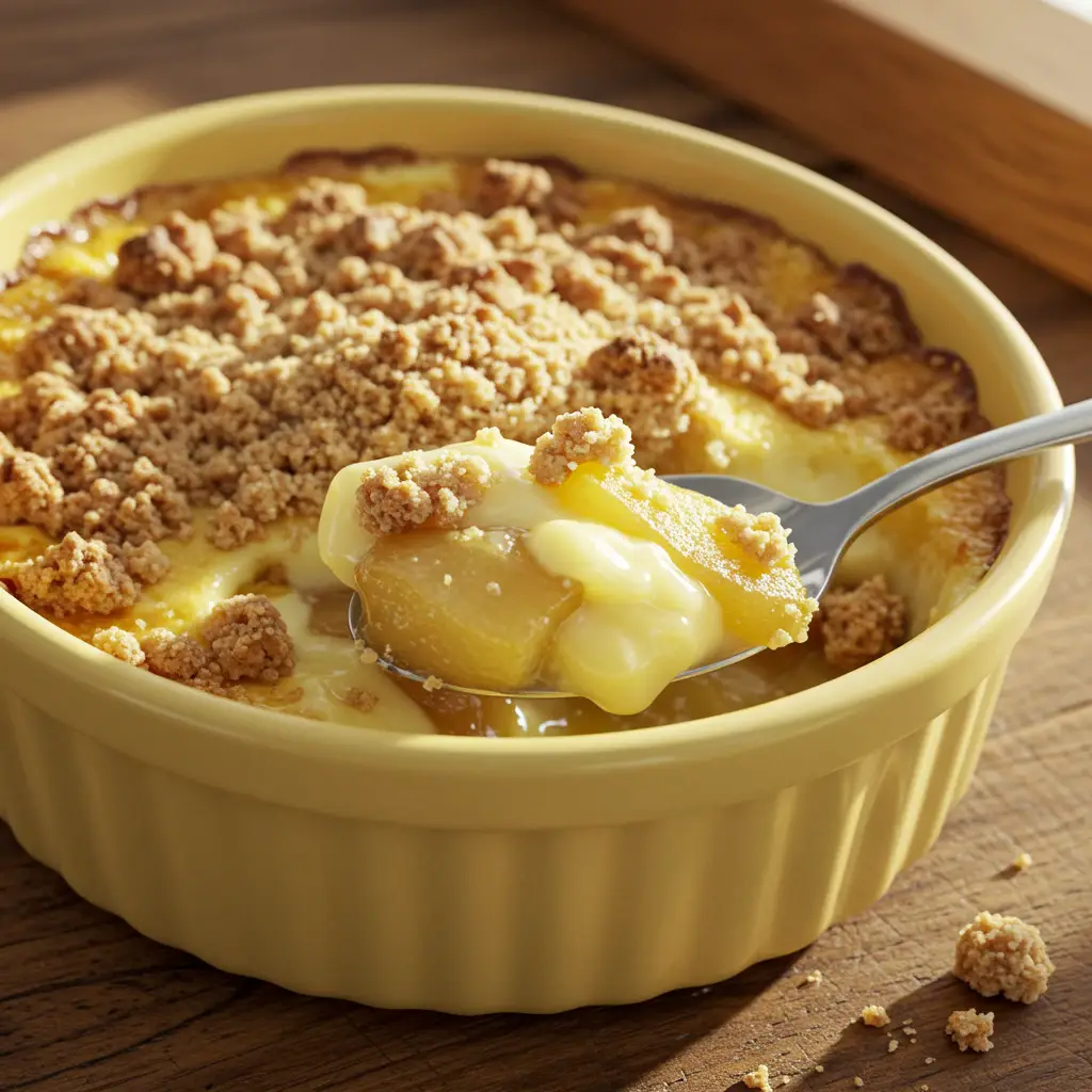 Após 15 minutos, retire o refratário do forno, espalhe a farofa sobre as frutas e volte ao forno, agora sem tampa, por mais 30 minutos, ou até que a farofa esteja dourada e as frutas estejam macias.