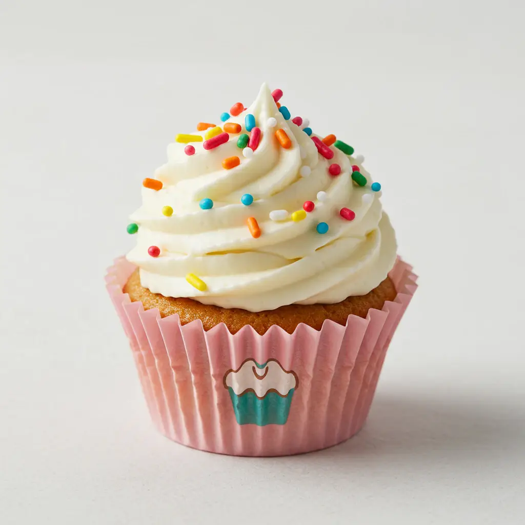 Decore os cupcakes com o creme quatro leites e os granulados coloridos.