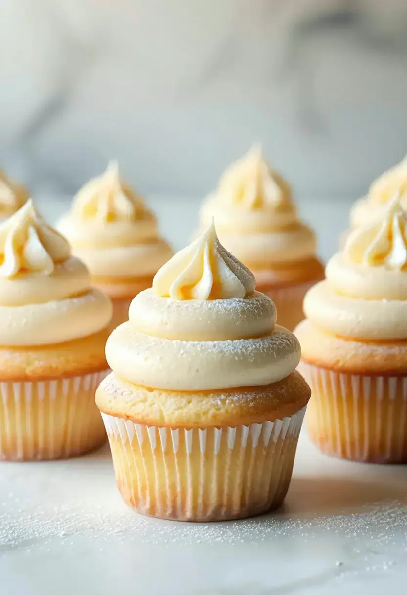 Desfrute desses cupcakes fofos cobertos com um creme de manteiga de vanilla. Perfeito para qualquer ocasião.
