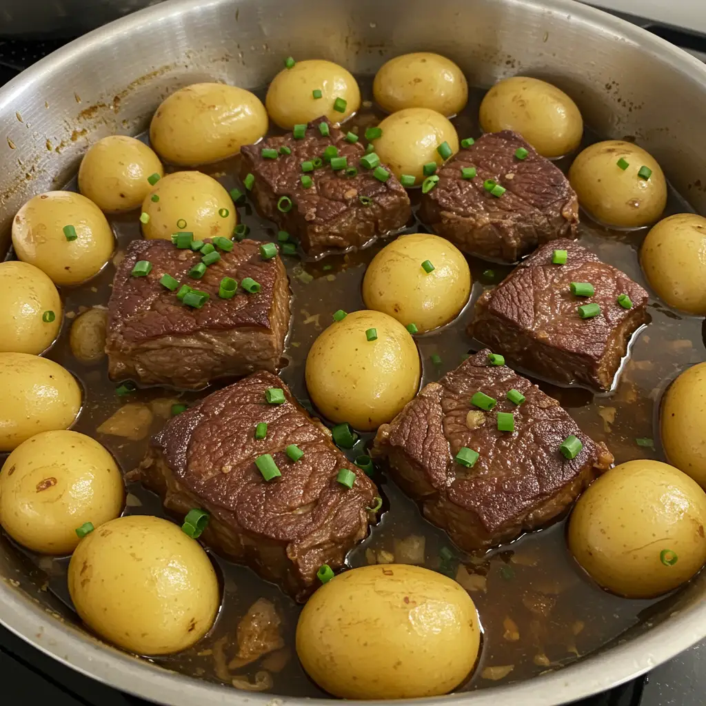 Cupim assado com perfeição, macio e suculento, acompanhado de batatas cozidas no próprio caldo da carne. Um prato brasileiro clássico, ideal para um almoço de domingo em família.