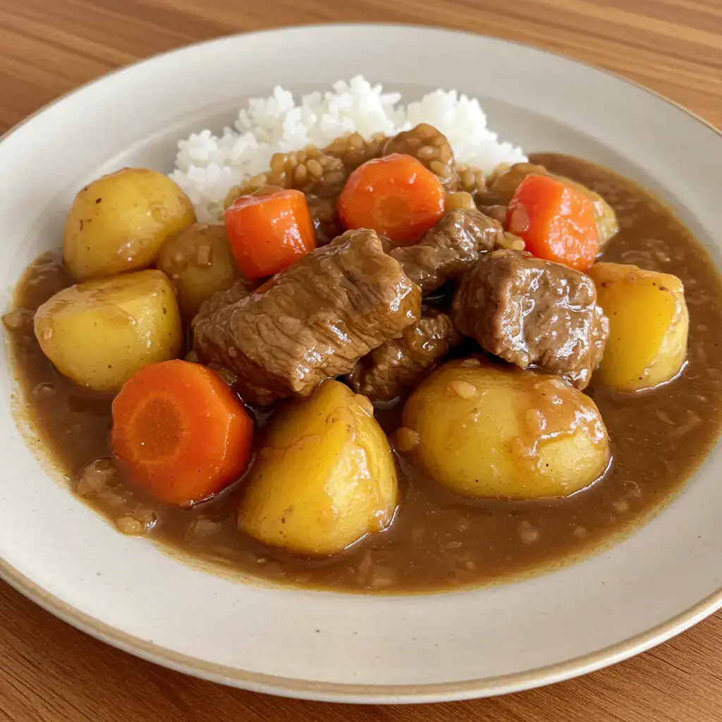 Quando o cozido estiver pronto, adicione a pasta de curry aos poucos, misturando bem e cozinhando por mais alguns minutos para apurar os sabores.