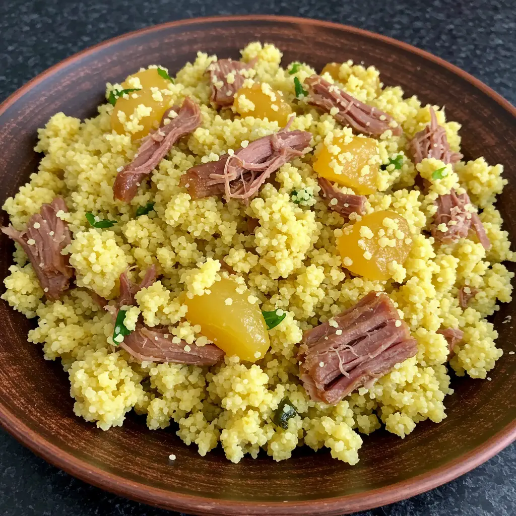 Um cuscuz cremoso e saboroso, com lombo desfiado e banana da terra caramelizada. Uma explosão de sabores da culinária nordestina, perfeito para um almoço especial!