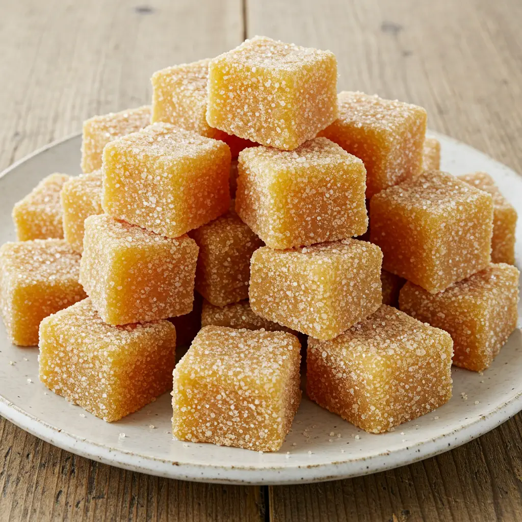 Passe os pedaços de doce em açúcar refinado para cristalizar.