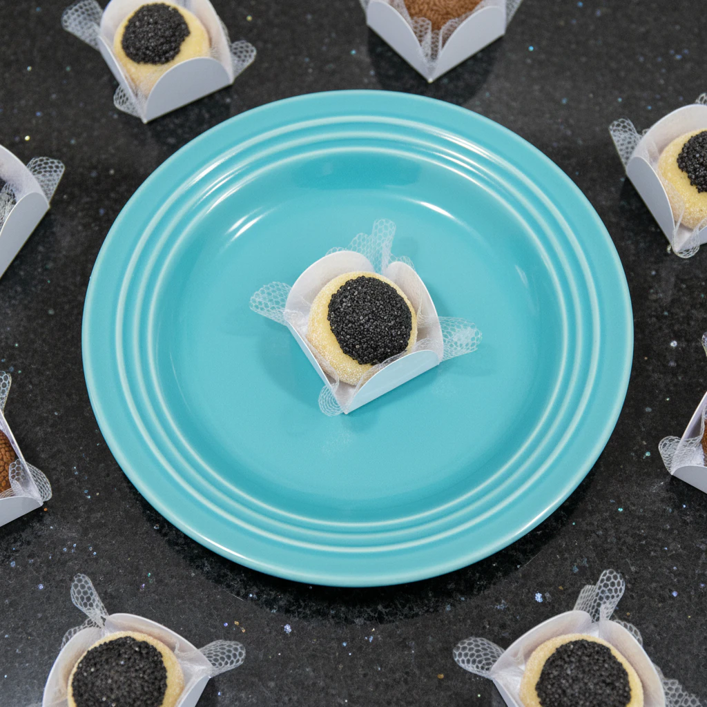 Com as mãos levemente untadas, modele pequenas porções da massa em formato de olho.