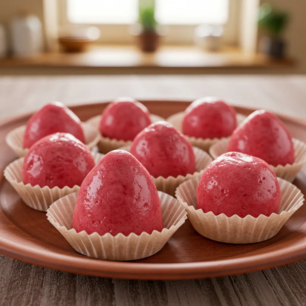 Deliciosos docinhos de morango, com textura cremosa e sabor intenso. Perfeitos para festas e eventos, ou para uma sobremesa rápida e deliciosa.