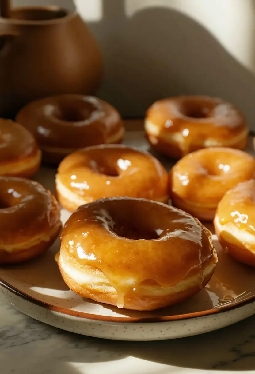 Delicie-se com esses donuts de maple fofos e doces, cobertos com uma rica cobertura de maple, perfeitos para o café da manhã ou para um doce lanche.