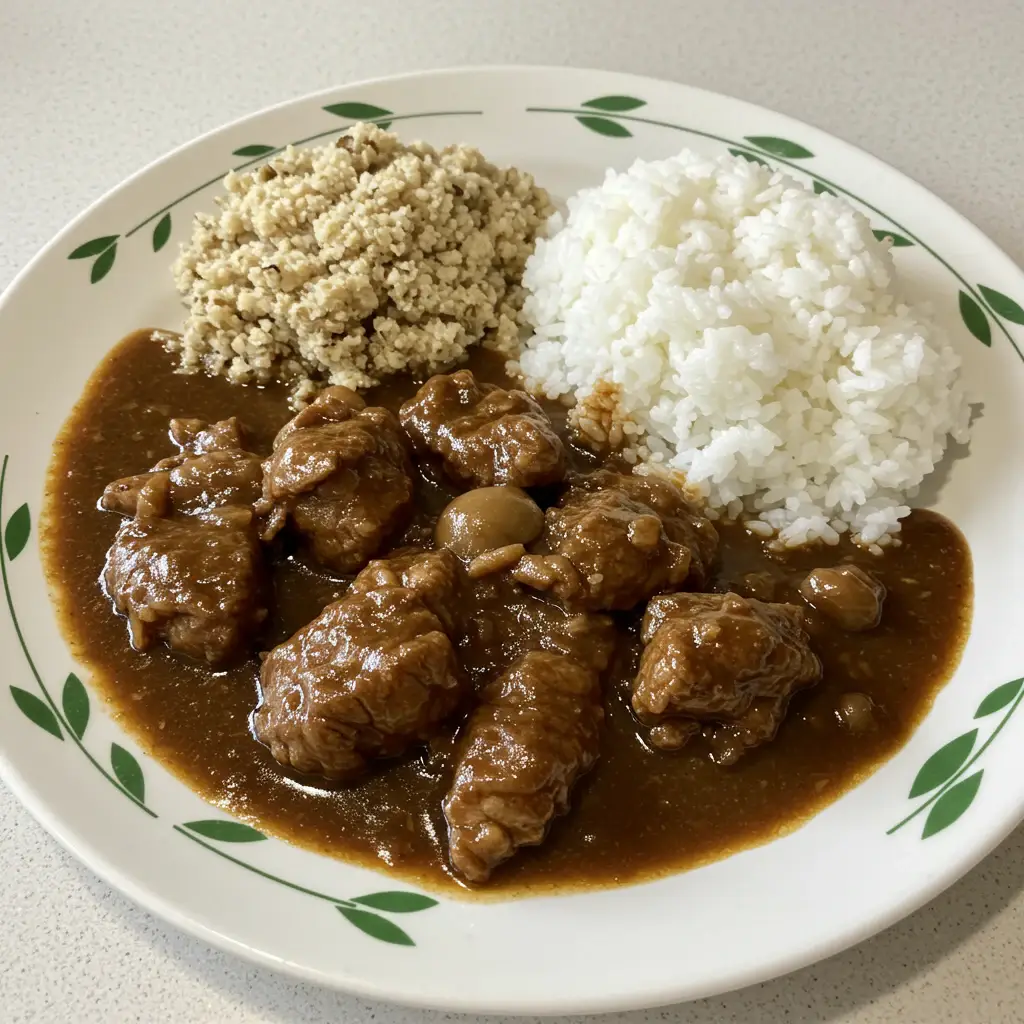 Sirva o ensopado quente, acompanhado de arroz branco e farofa.