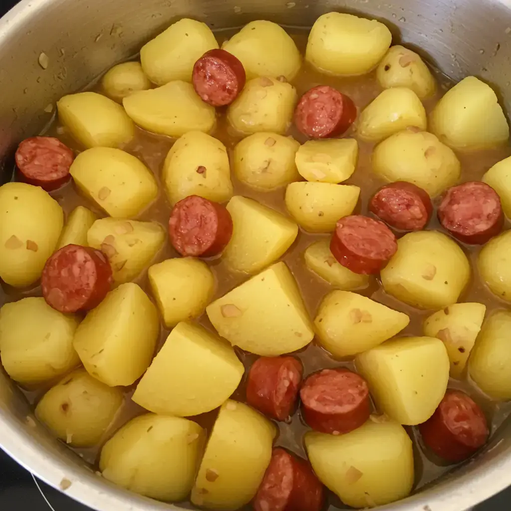 Um ensopado simples e saboroso, perfeito para um jantar reconfortante. Linguiça suculenta e batatas macias em um molho apetitoso. Ideal para um dia frio!