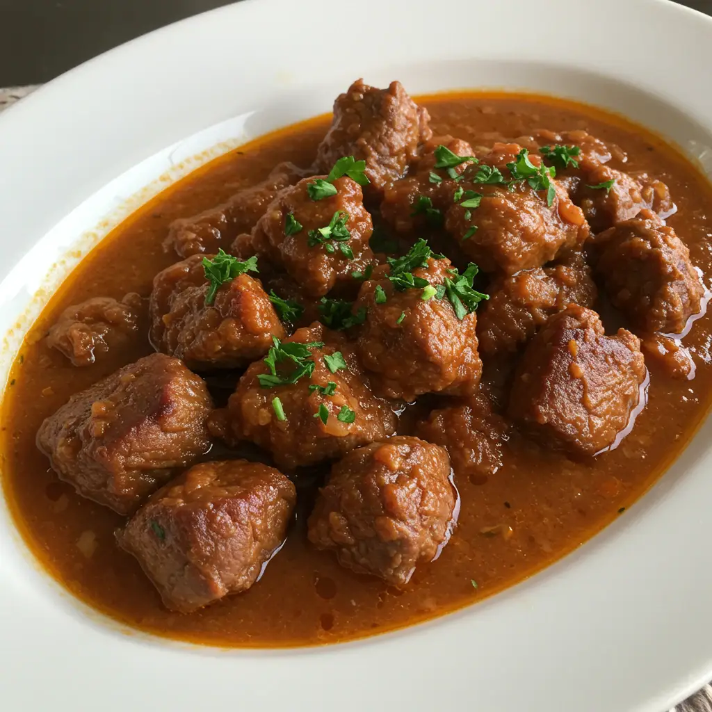 Um ensopado brasileiro reconfortante e saboroso! Músculo bovino cozido lentamente até ficar macio, em um molho suculento de tomate e legumes, acompanhado de batatas cremosas. Perfeito para um almoço em família!