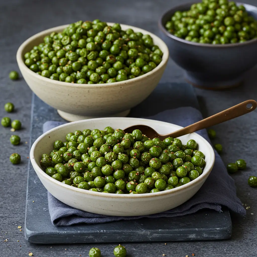 Ervilhas crocantes e saborosas, assadas com um toque de cominho e canela. Um acompanhamento perfeito para carnes ou um petisco delicioso. Simples de fazer e cheio de sabor!