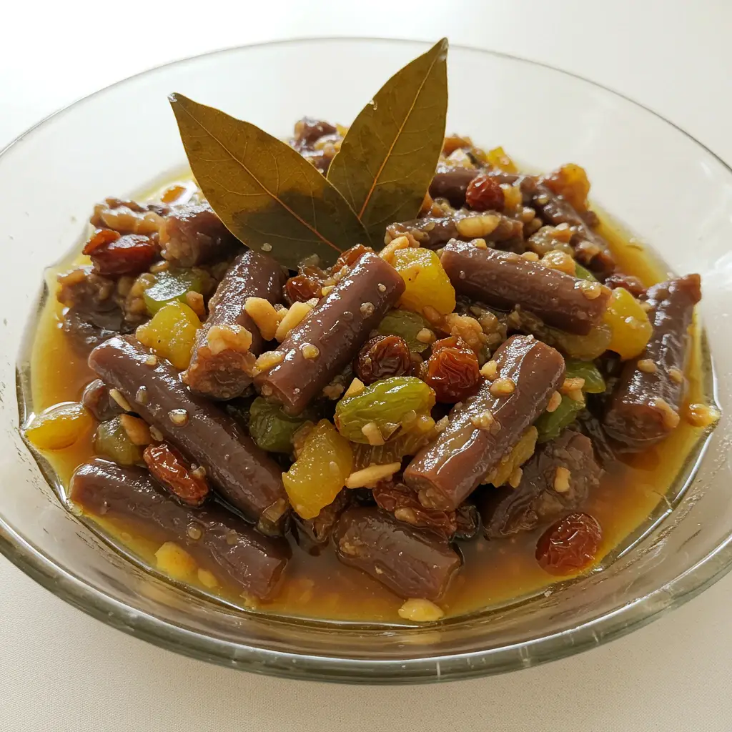 Um escabeche brasileiro vibrante e saboroso! Berinjelas macias e suculentas, harmonizadas com pimentões coloridos, frutas secas e castanhas, num molho agridoce irresistível.