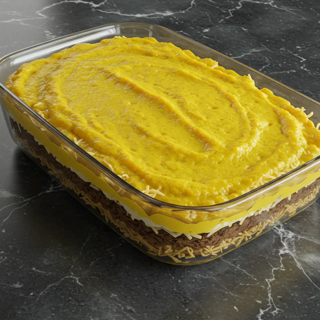 Um saboroso escondidinho que combina a cremosidade do purê de banana-da-terra com o suculento recheio de carne moída. Uma explosão de sabores da culinária brasileira, perfeito para um jantar especial ou um almoço em família.