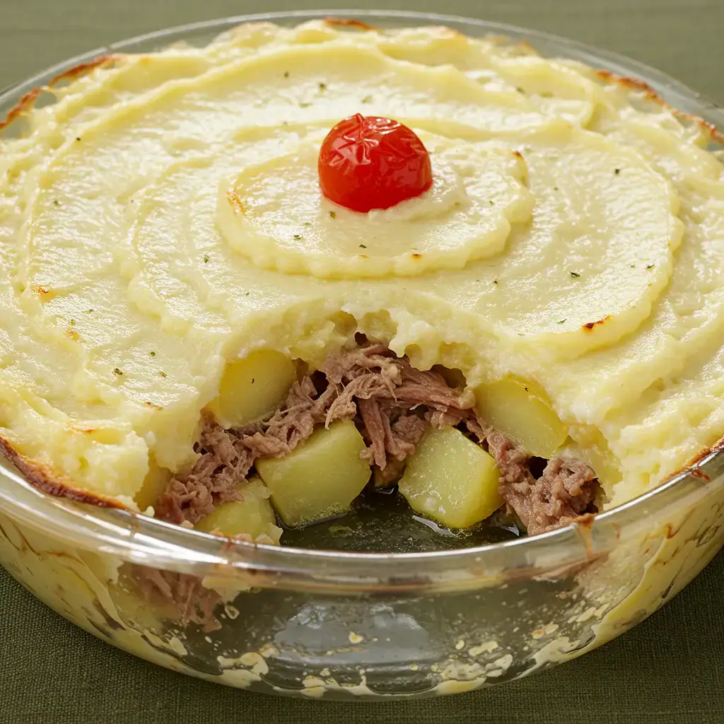 Um clássico reconfortante! Delicioso escondidinho com carne-seca desfiada, purê de batatas cremoso e queijo gratinado. Perfeito para um jantar especial ou um almoço em família.
