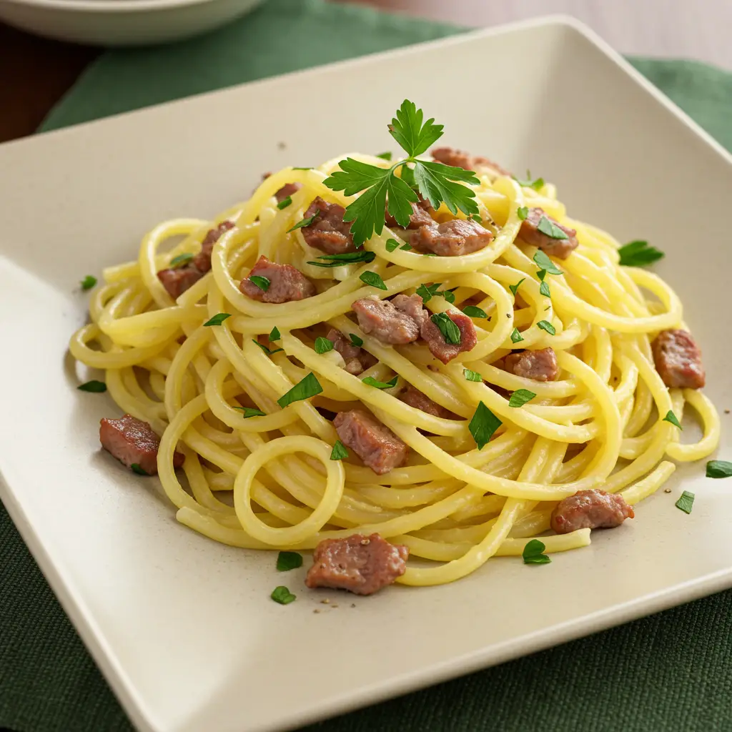 Um espaguete cremoso e saboroso, com o toque defumado do lombo e bacon que vai te surpreender! A combinação perfeita de texturas e sabores, ideal para um jantar especial.