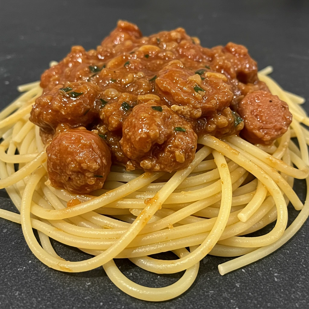 Um espaguete saboroso e reconfortante, com linguiça suculenta em um molho tinto intenso e equilibrado. Prato simples, rápido e perfeito para um jantar em família.
