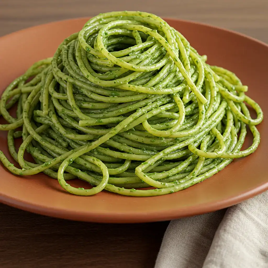 Um clássico italiano com toque brasileiro! Pesto fresco e cremoso, feito com ingredientes simples, combinando perfeitamente com o sabor do espaguete. Uma refeição rápida e deliciosa para o dia a dia.