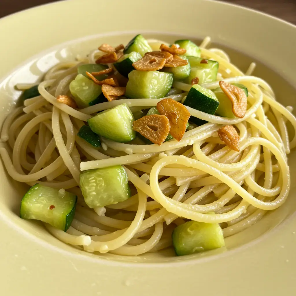 Espaguete com Abobrinha e Alho Crocante