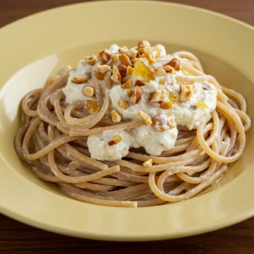 Espaguete Integral com Ricota e Castanhas